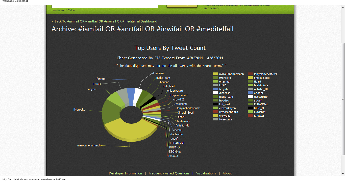 L’idée a été lancée de décrire les expériences qu’ont les internautes en tant que client des opérateurs de télécoms, sous le nom #ANRTFAIL (ANRT = Agence Nationale de Règlementation des Télécommunications) et Fail = problème, échec. #IAMFAIL (Ittissalat Al Maghrib = Maroc telecom). #Meditelfail (meditelecom) et #inwifail ( INWI marque de Wana Corp).